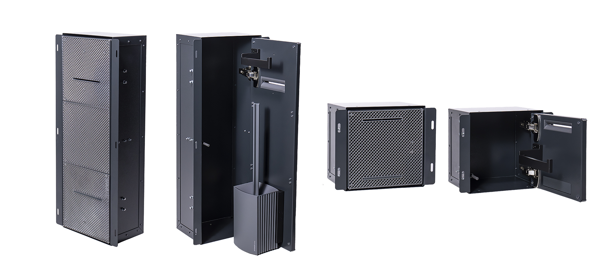 Easy To Tile built-in toilet brush and toilet paper holder (left or right opening in one)