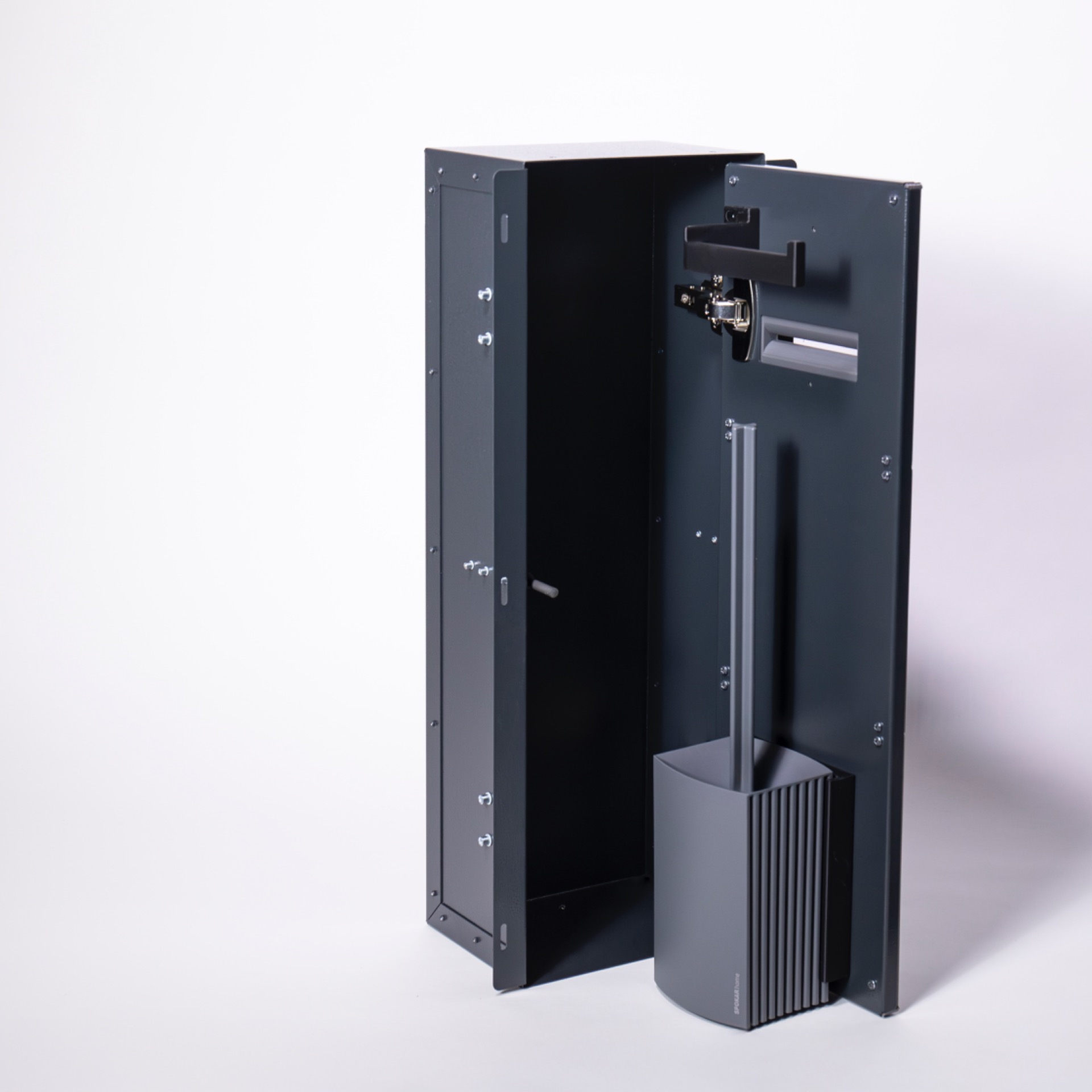 This elegant concealed module is made of Zinc + Komaxit in anthracite, which guarantees durability, a modern look and easy maintenance. The concealed Easy To Tile cabinet has a practical width of 60 cm and is equipped with doors with adjustable Hinges and a Soft Close system. Toilet paper can be stored inside, eliminating the need for a separate toilet paper holder.