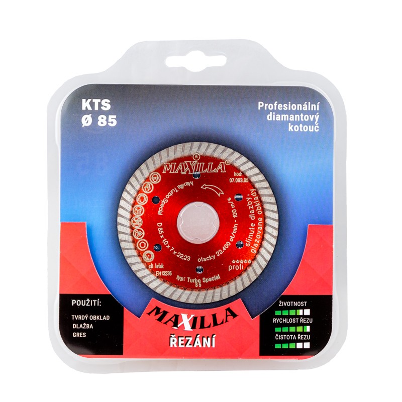 Diamanttrennscheibe zum Schneiden kleiner rechteckiger Löcher in Fliesen, Trennscheibendurchmesser 85 mm.