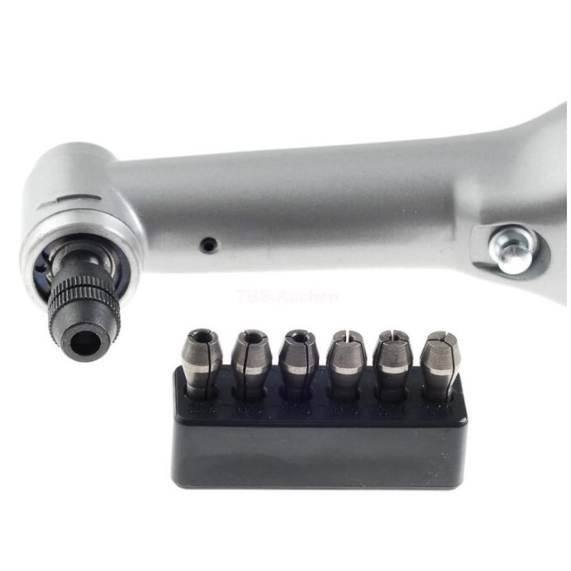 6 Spannzangen für Schäfte: 1 - 1,5 - 2 - 2,4 - 3 und 3,2 mm mit Spannmutter. Kunststoffkoffer